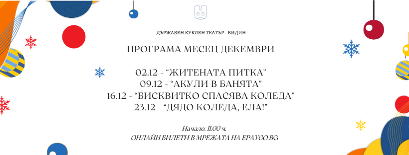 Очаква ни празничен декември с регулярни съботни срещи в салона на театъра, извънредни в много от детските градини в града и страната, една Коледна премиера и още изненади!